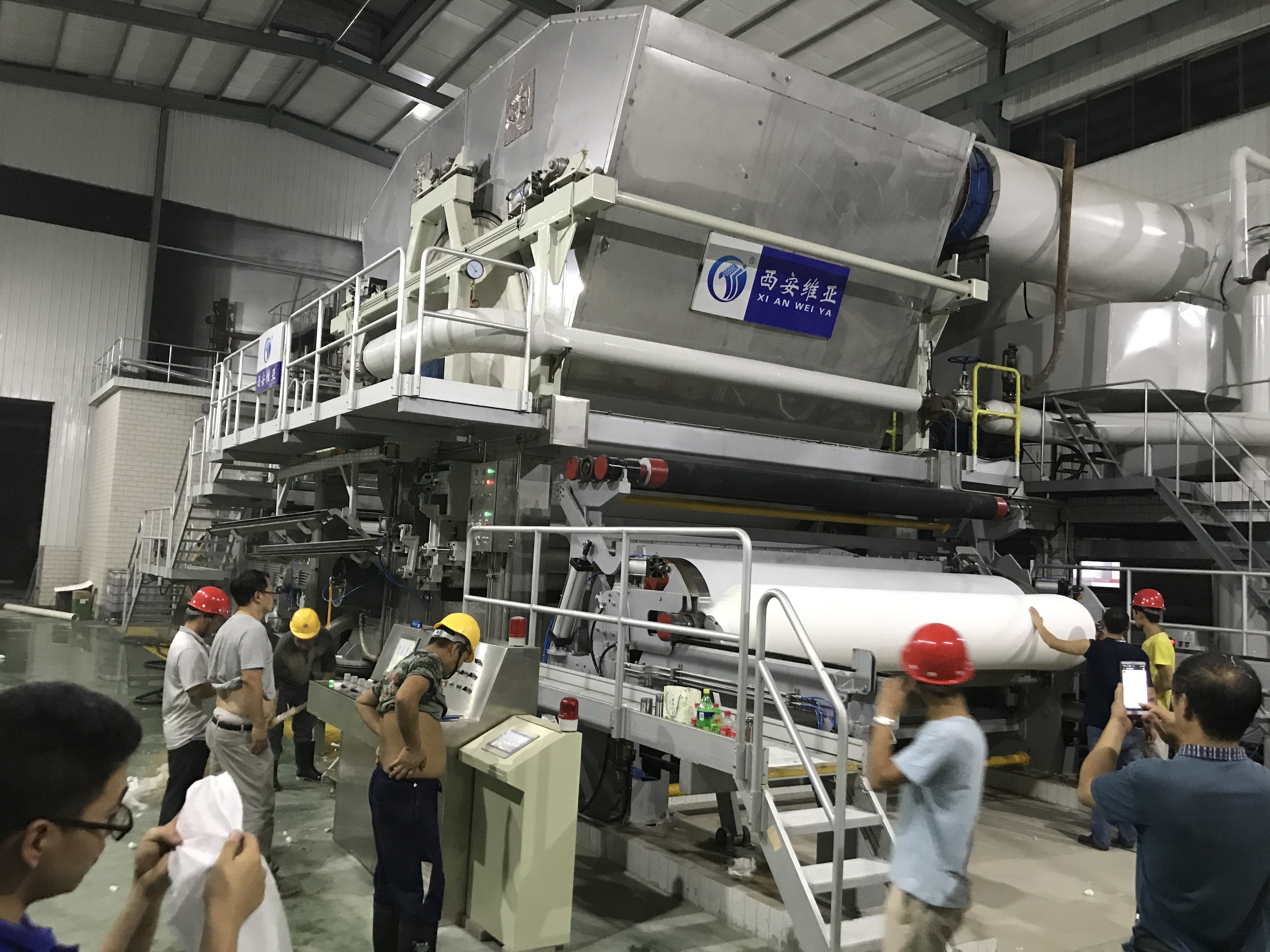2017年8月22日保定市興榮紙業(yè)有限公司高速新月型衛生紙機3500/1200開(kāi)機成功。