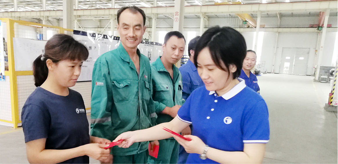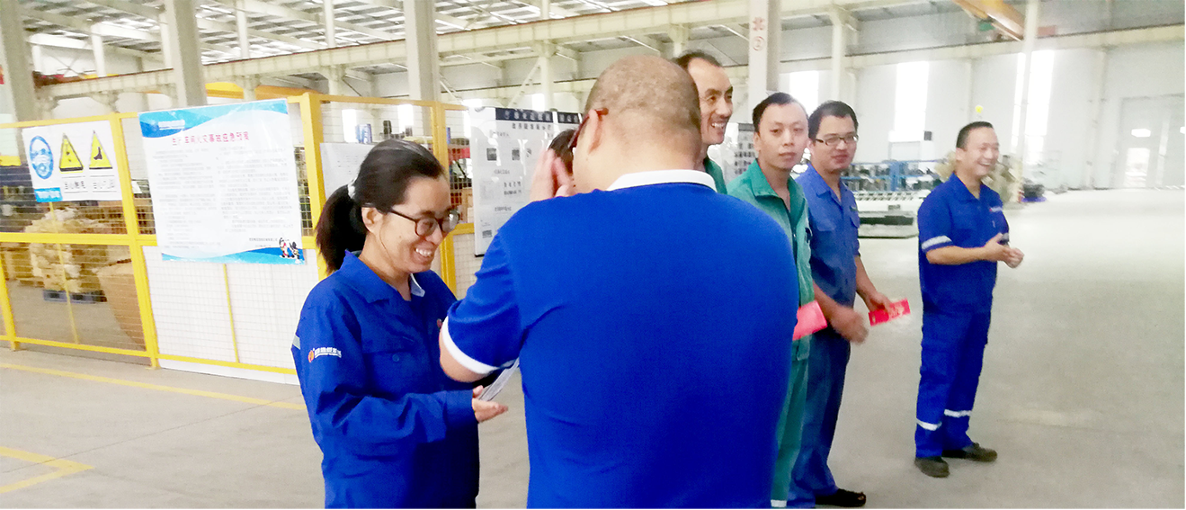 其次付小松公布了“改善提案”表彰人員名單:劉夢(mèng)春、畢哲、程亞芬、楊衛東、王濤、王飛,接著(zhù)邀請胡總和謝總頒發(fā)現金獎勵和“改善之星”榮譽(yù)證書(shū)?!案纳浦恰苯o大家分享了改善方案。
